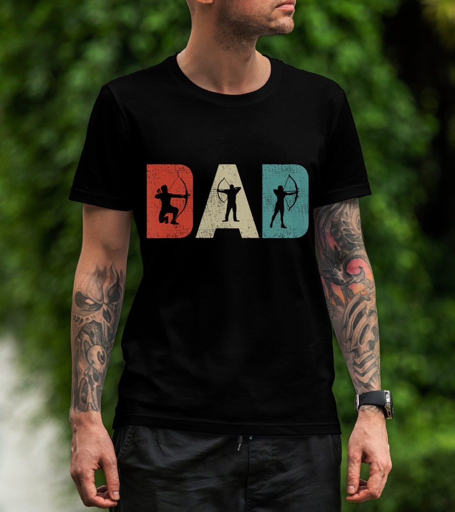 The Dad Vintage Archery T-shirt is designed for everyday wear and a consistent fit. Fabric is pre-shrunk ring-spun cotton with durable stitching. See the size chart below for exact measurements.
