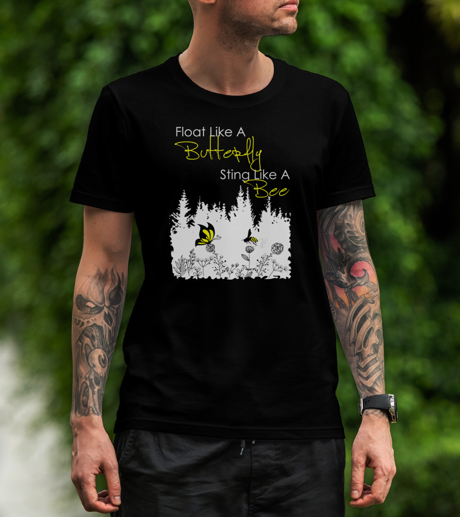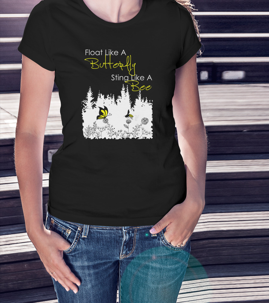 Float Like A Butterfly Sting Like A Bee Forest Nature Scene With Yellow Butterfly And Bee T-Shirt