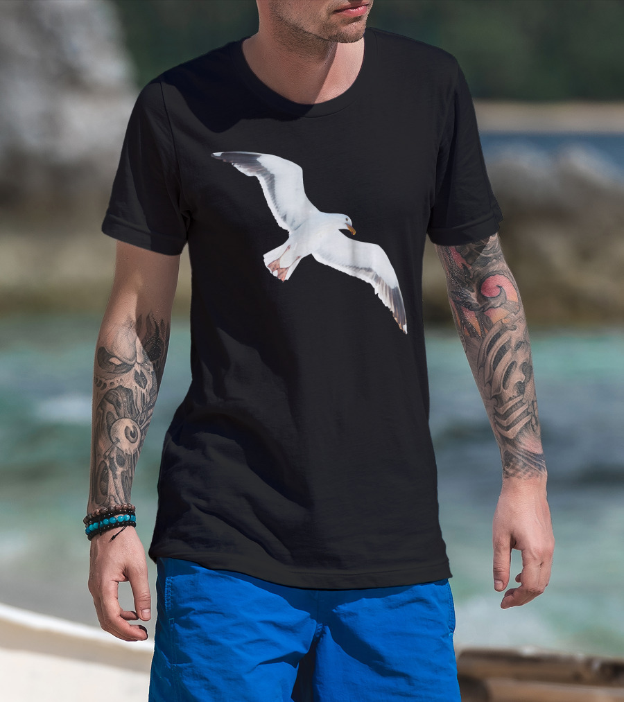 The Majestic Flying Seagull for Seagull Lover T-shirt is designed for everyday wear and a consistent fit. Fabric is pre-shrunk ring-spun cotton with durable stitching. See the size chart below for exact measurements.