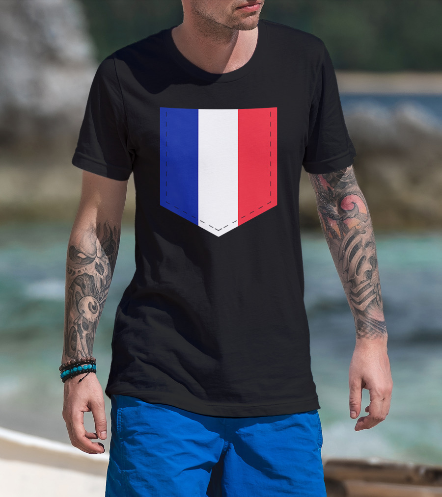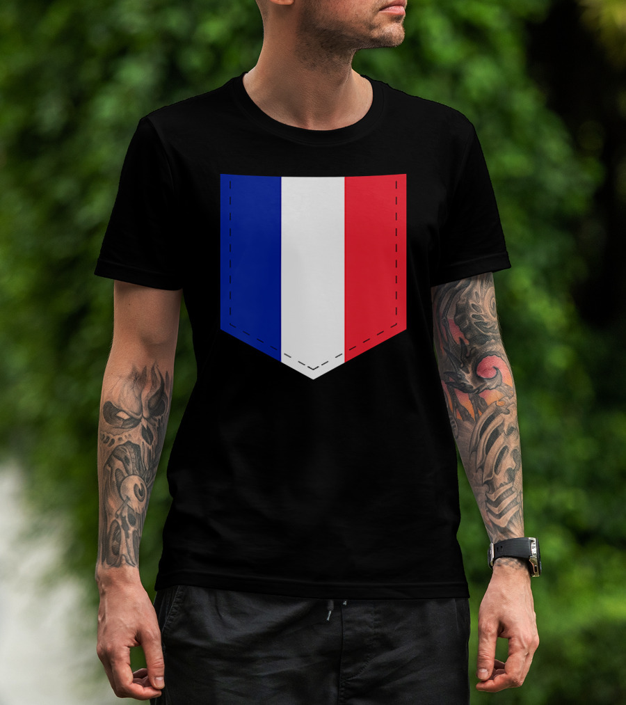 The French Flag Blue White Red Pocket T-shirt is designed for everyday wear and a consistent fit. Fabric is pre-shrunk ring-spun cotton with durable stitching. See the size chart below for exact measurements.