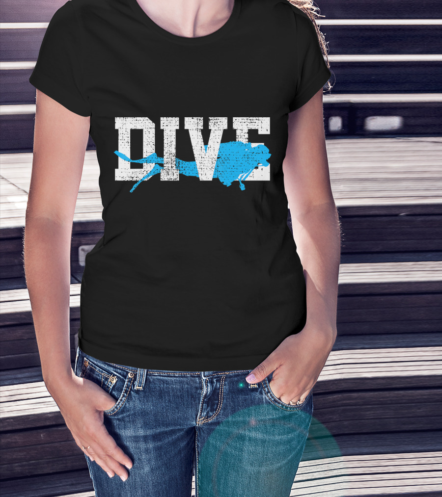 Vintage Scuba Diving Dive Diver Station Scho Bold Dive Text With Diver T-Shirt