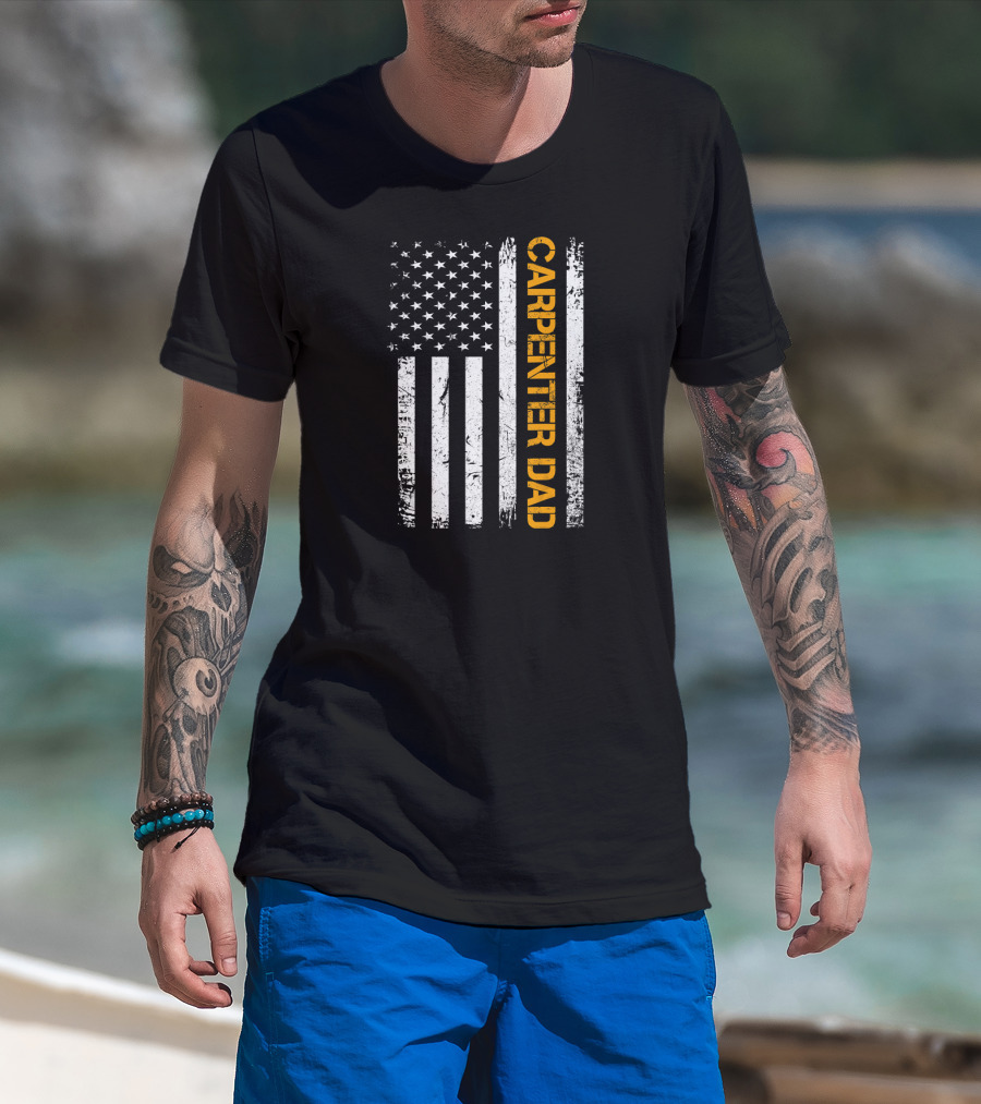 Vintage USA Carpenter Dad American Flag Woodworking T-Shirt