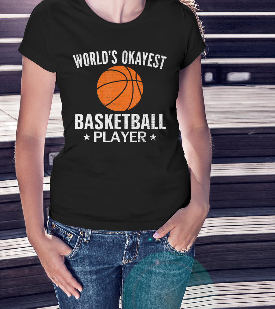 The World's Okayest Basketball Player T-shirt is designed for everyday wear and a consistent fit. Fabric is pre-shrunk ring-spun cotton with durable stitching. See the size chart below for exact measurements.