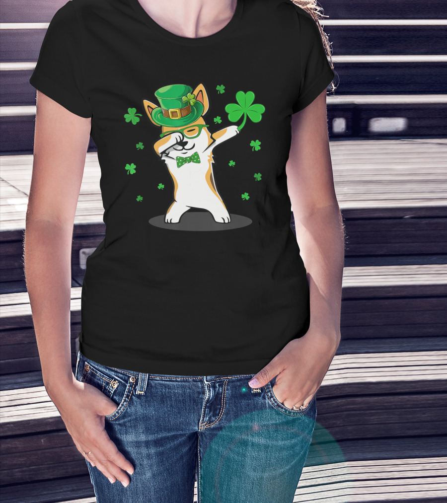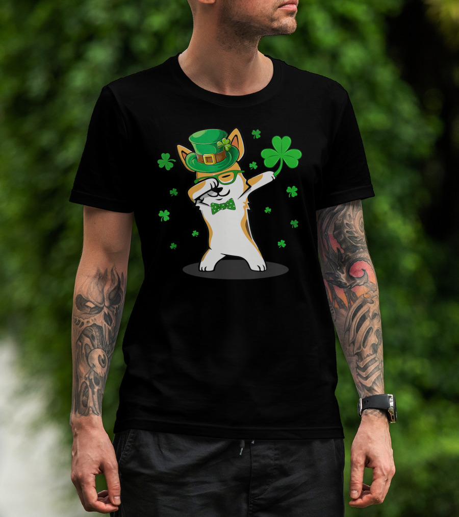 Dabbing Corgi With Shamrocks And Leprechaun Hat For St. Patrick's Day T-Shirt