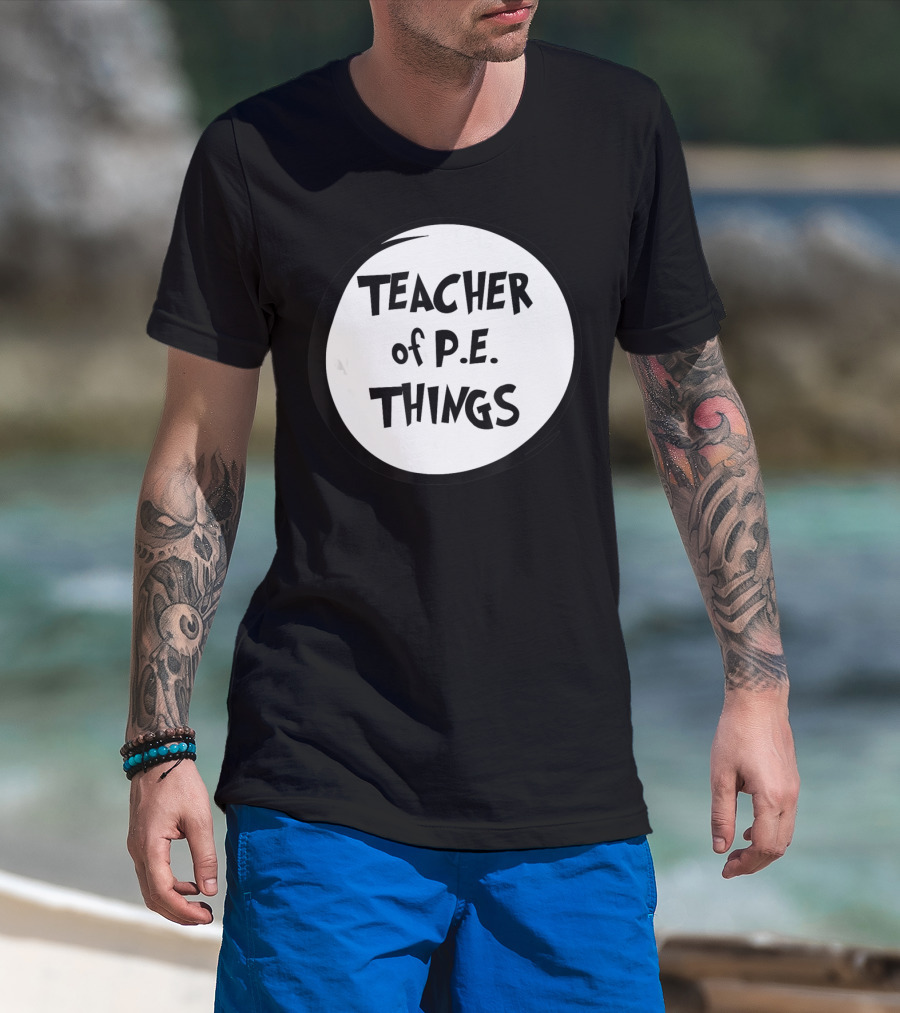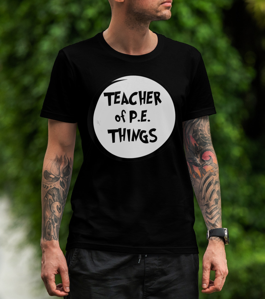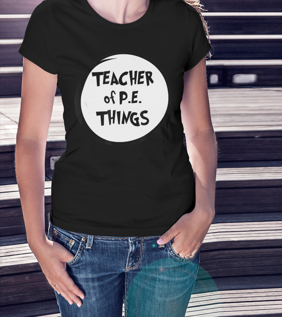 The Teacher of P.E. Things T-shirt is designed for everyday wear and a consistent fit. Fabric is pre-shrunk ring-spun cotton with durable stitching. See the size chart below for exact measurements.