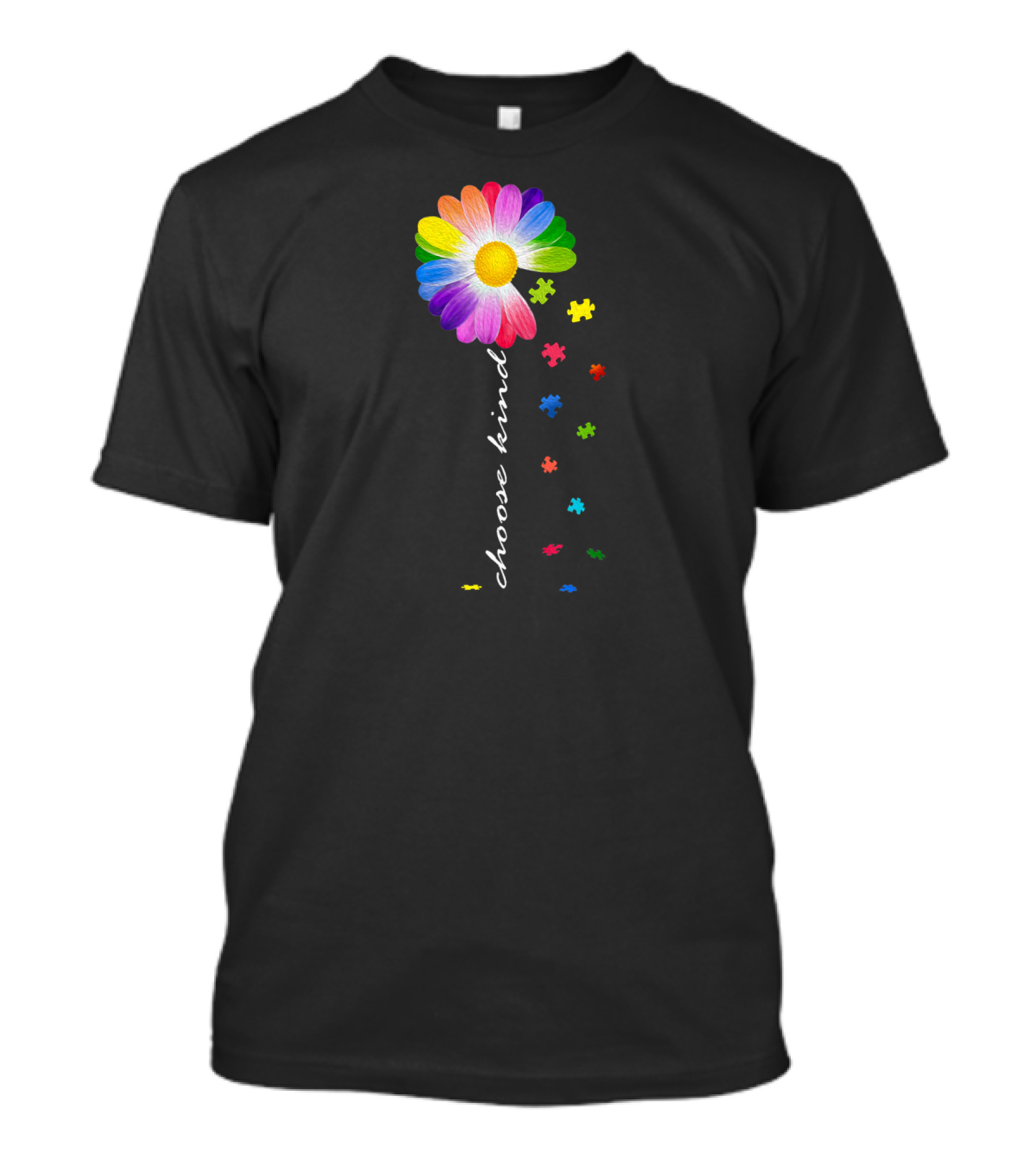 Choose Kind Rainbow Daisy Autism Awareness Puzzle Pieces T-Shirt