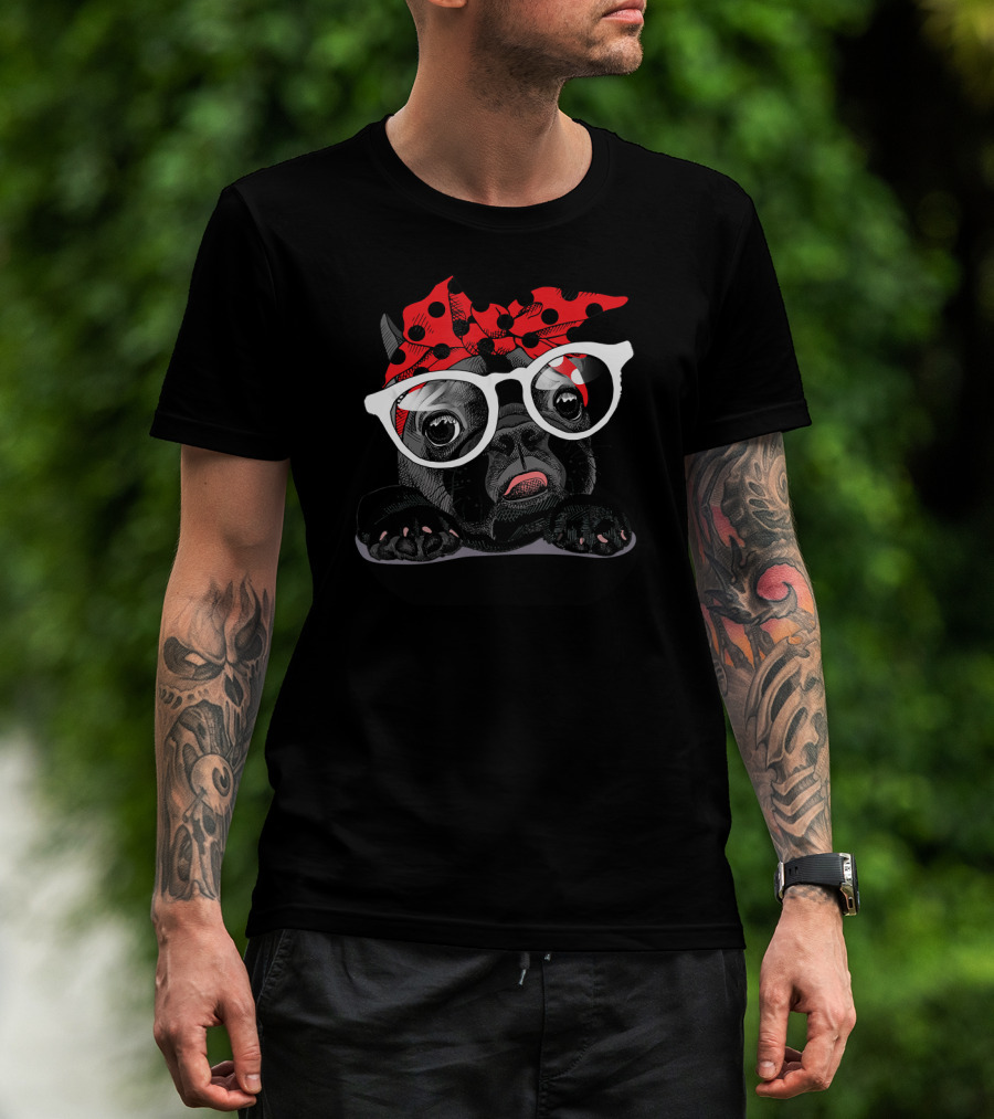 French Bulldog With Polka Dot Headband And Glasses T-Shirt