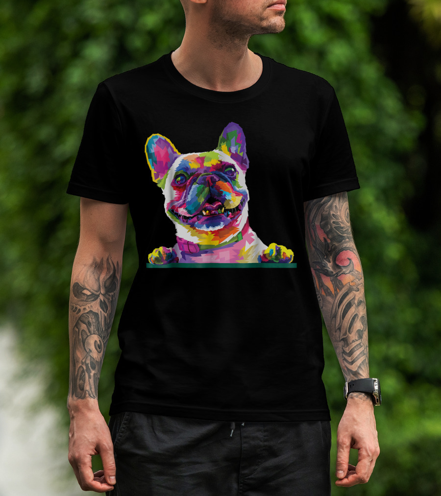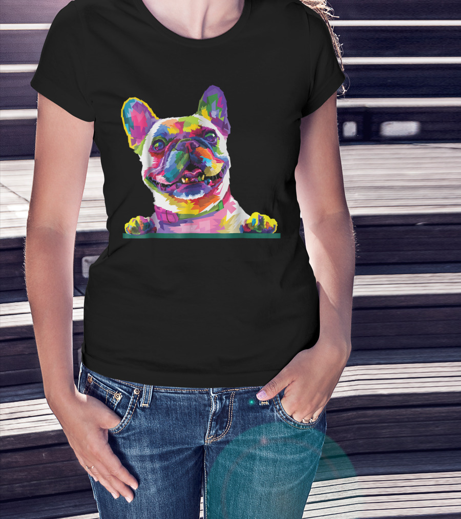 The French Bulldog Colorful Dog Pop T-shirt is designed for everyday wear and a consistent fit. Fabric is pre-shrunk ring-spun cotton with durable stitching. See the size chart below for exact measurements.