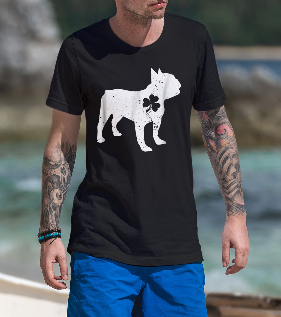 French Bulldog With Shamrock For St Patrick's Day T-Shirt