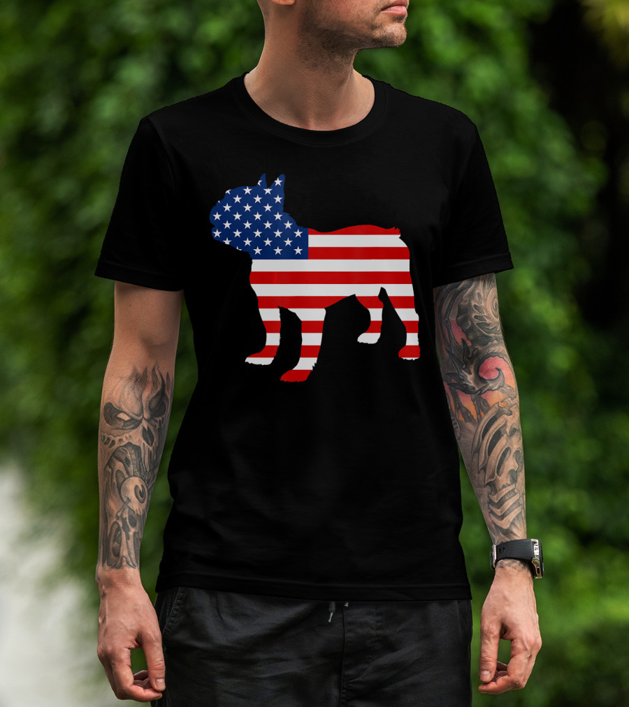 The French Bulldog American Flag Fourth of July USA T-shirt is designed for everyday wear and a consistent fit. Fabric is pre-shrunk ring-spun cotton with durable stitching. See the size chart below for exact measurements.