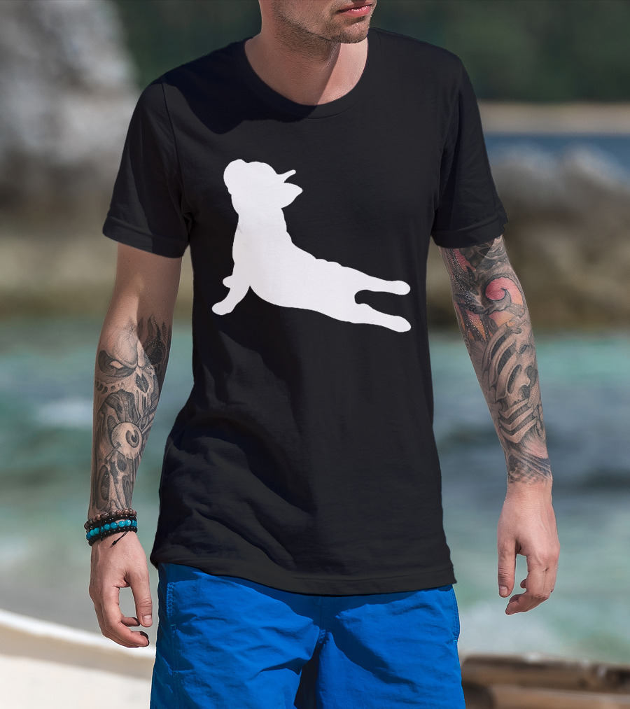 The French Bulldog Yoga Stretch Pose T-shirt is designed for everyday wear and a consistent fit. Fabric is pre-shrunk ring-spun cotton with durable stitching. See the size chart below for exact measurements.