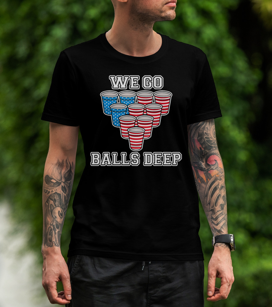 We Go Balls Deep American Flag Beer Pong Cups USA College T-Shirt