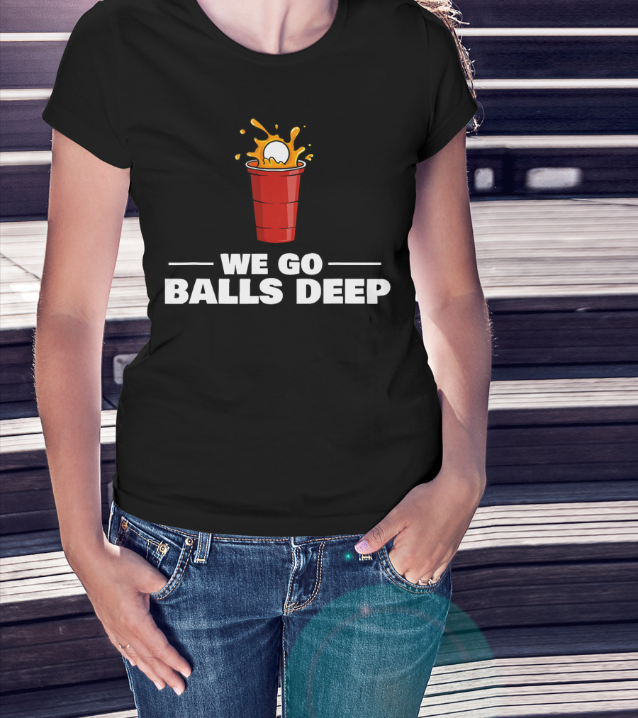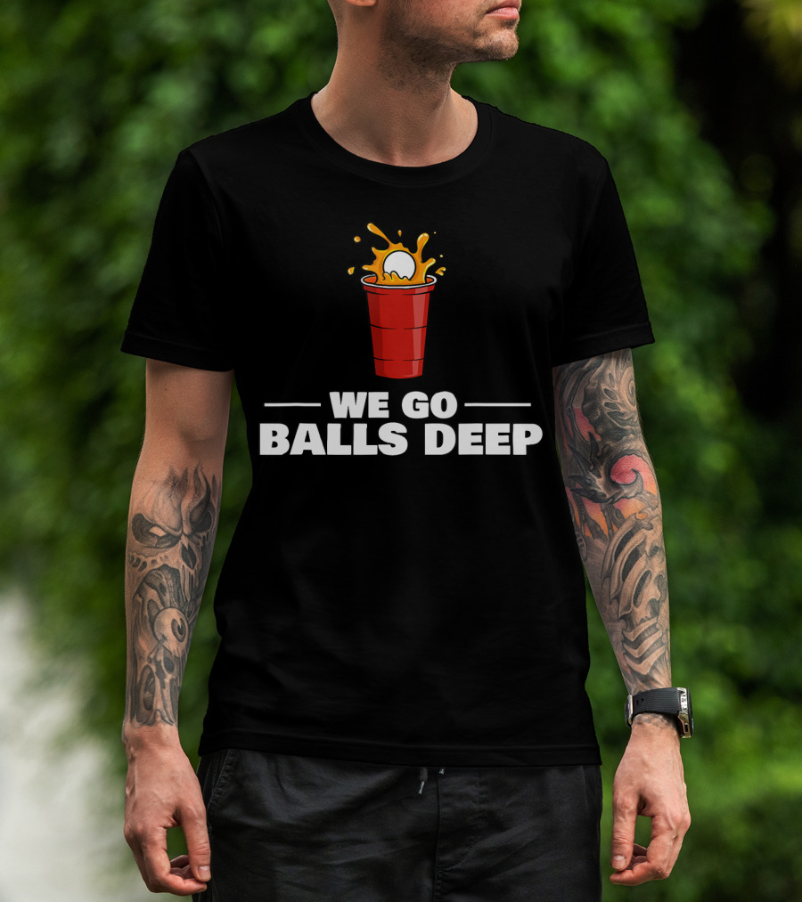 We Go Balls Deep Beer Pong Player Drinkin Red Cup Splash T-Shirt
