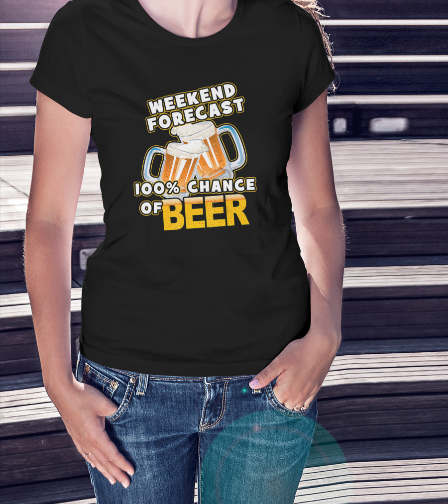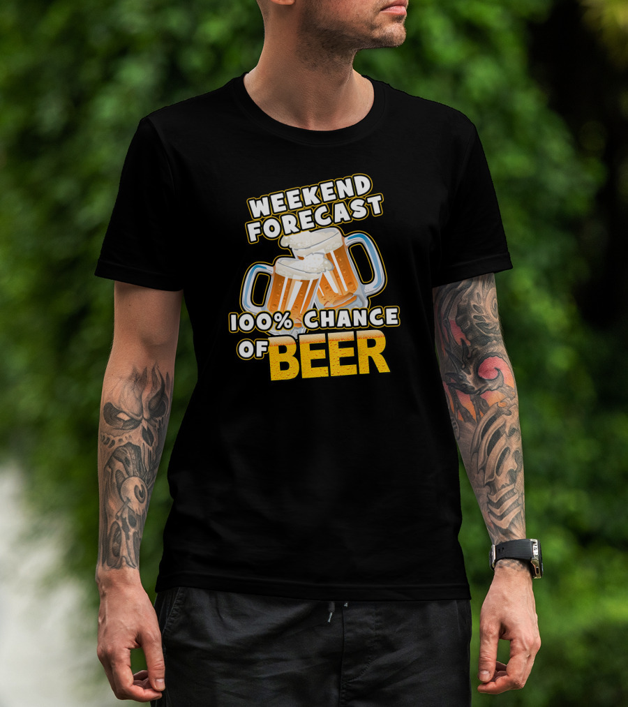 Weekend Forecast 100% Chance Of Beer Two Mugs T-Shirt
