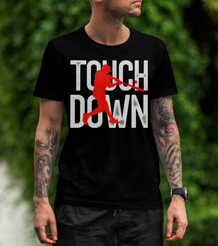 The Touchdown Baseball Football Sarcasm Humor T-shirt is designed for everyday wear and a consistent fit. Fabric is pre-shrunk ring-spun cotton with durable stitching. See the size chart below for exact measurements.