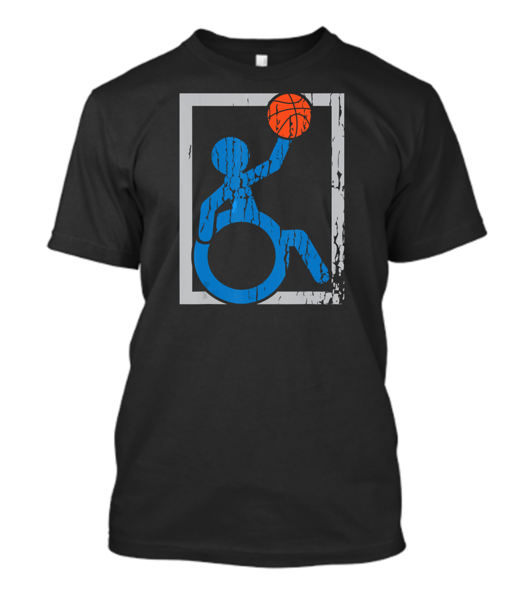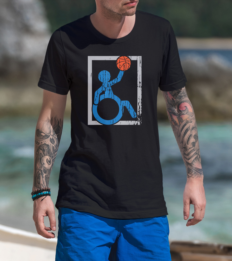 Wheelchair Basketball Icon Blue Figure With Orange Ball T-Shirt