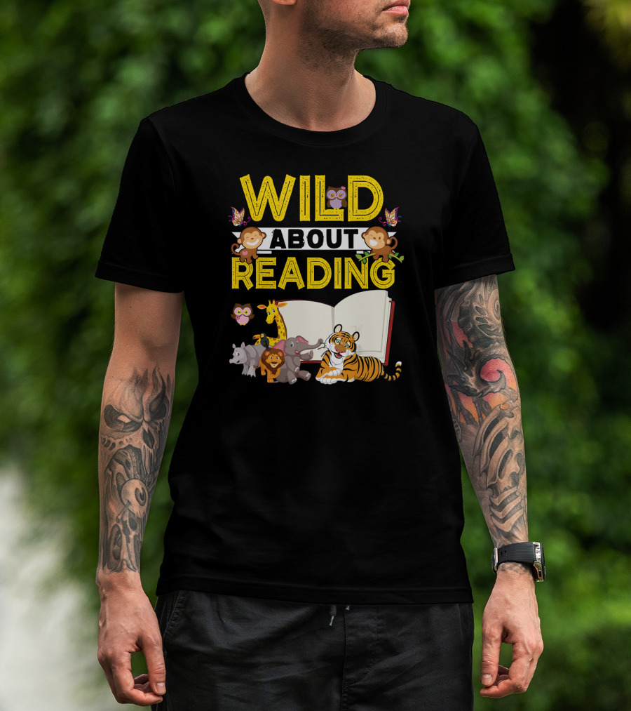Wild About Reading Back To School Jungle Safari Animals Kids Book T-Shirt