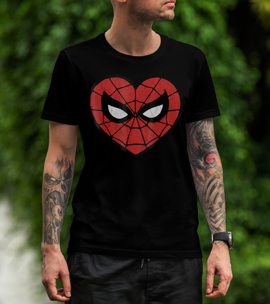 Marvel Spider Man Heart Face Mask Valentines T-Shirt