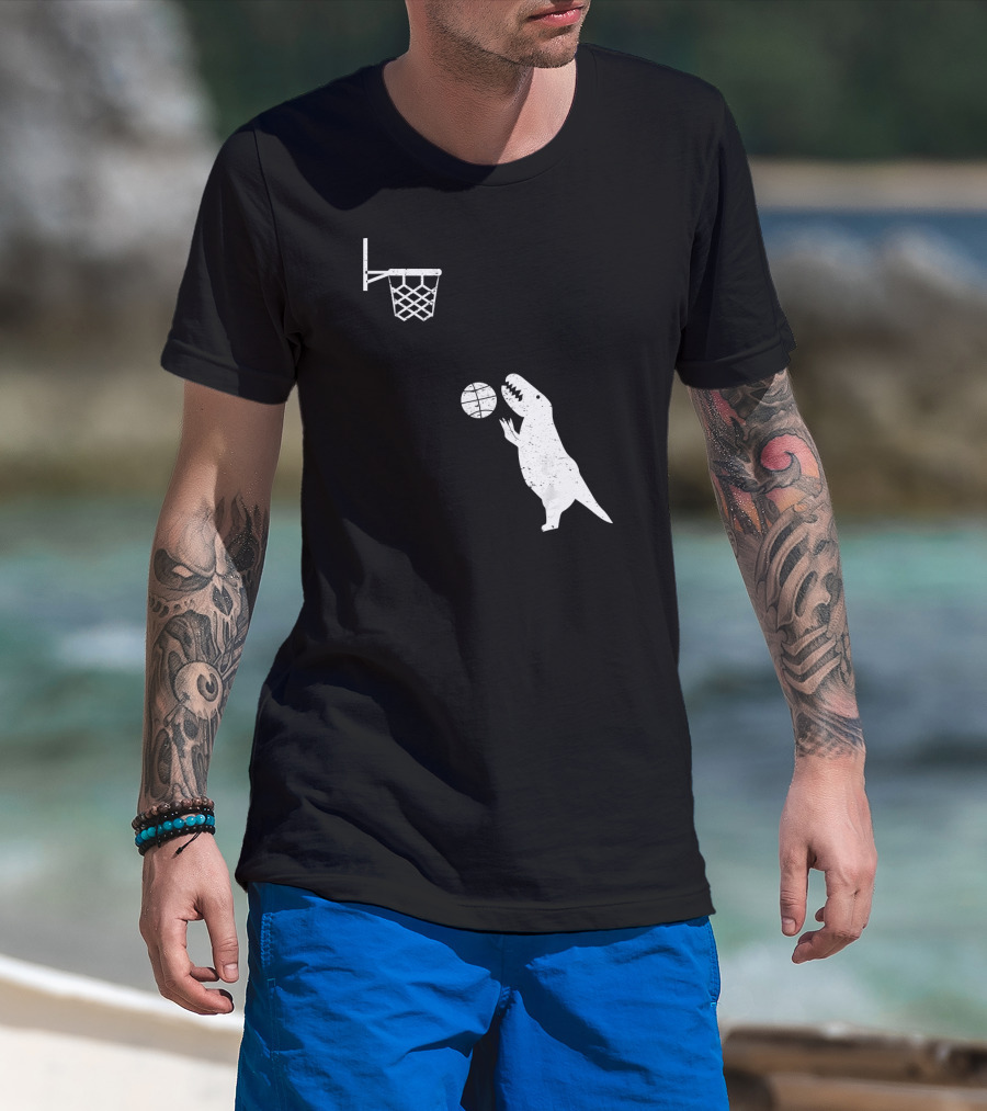 Funny Basketball Dinosaur Rex Throwin' Slam Dunk T-Shirt