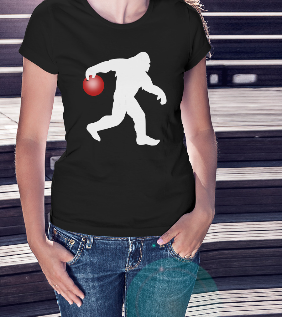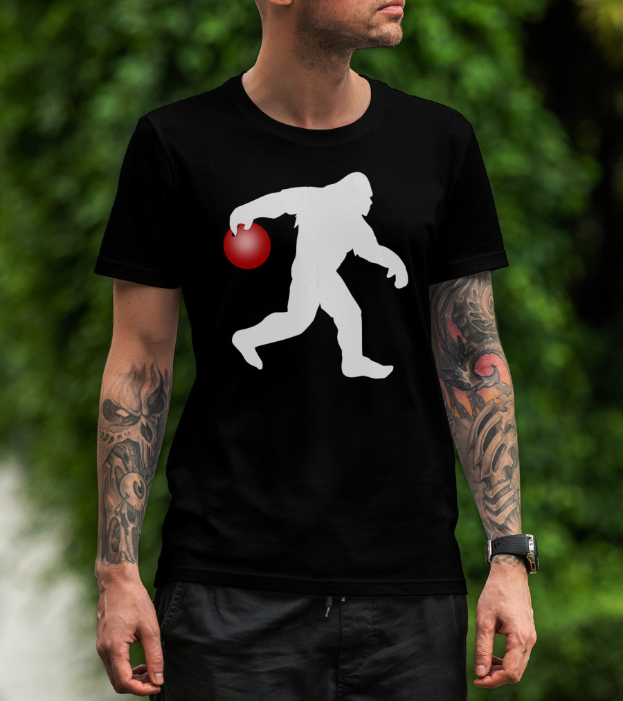 Bigfoot Bowling Silhouette With Red Bowling Ball T-Shirt