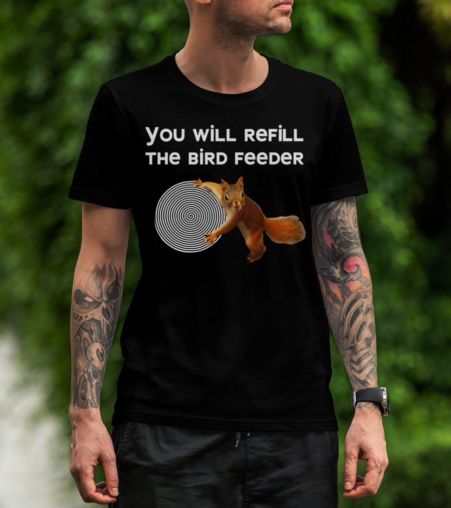 You Will Refill The Bird Feeder Funny Bird Feeder Is Empty Nutty Hyp Squirrel Hypnotizes T-Shirt