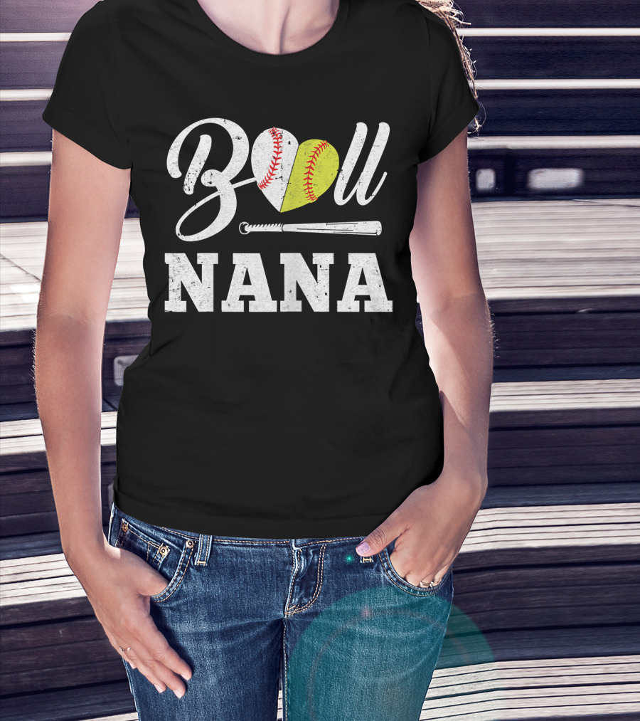 Ball Nana Heart Softball Baseball Bat T-Shirt
