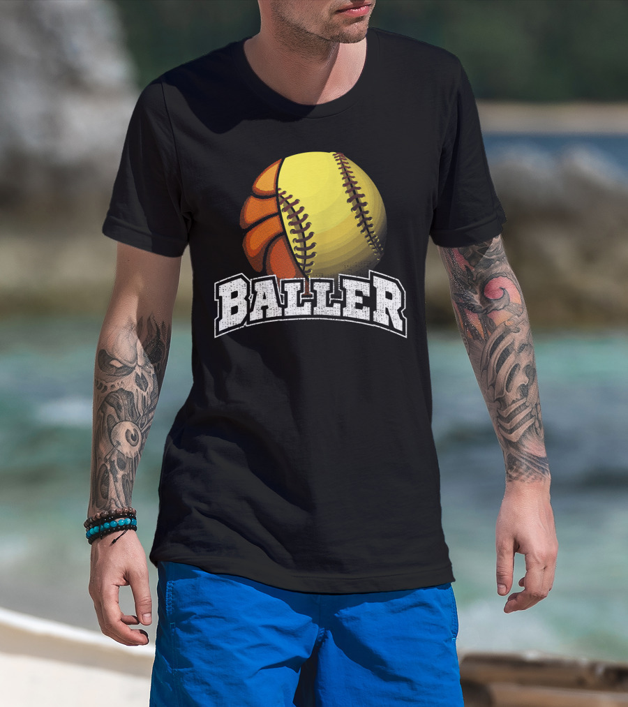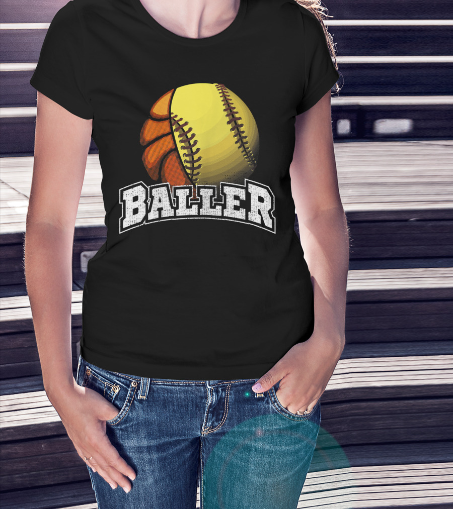 Baller Funny Girls Softball Basketball Combo T-Shirt