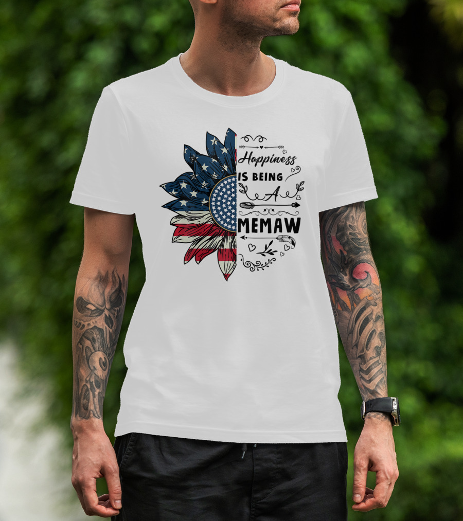 Happiness Is Being A Memaw Sunflower American Flag T-Shirt