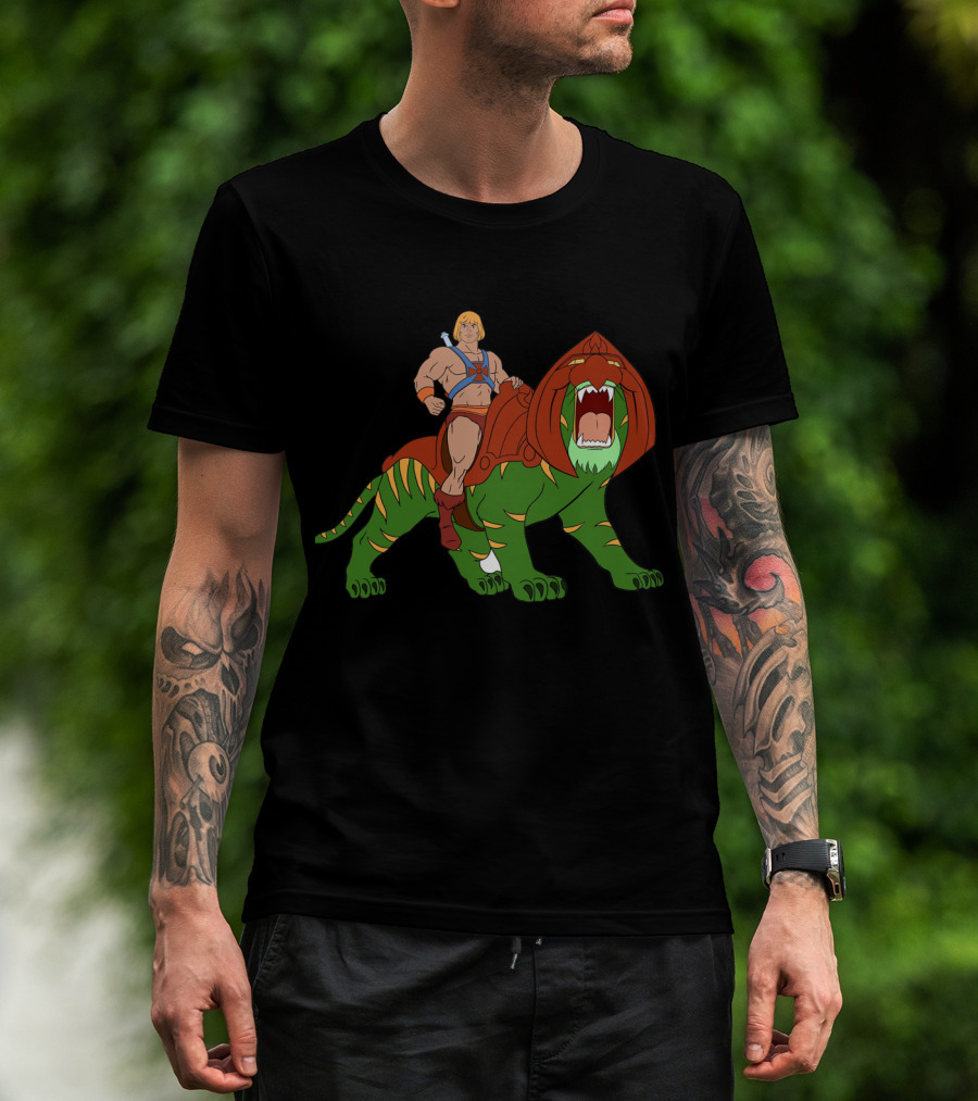 The He-Man and BattleCat Classic Filmation T-shirt is designed for everyday wear and a consistent fit. Fabric is pre-shrunk ring-spun cotton with durable stitching. See the size chart below for exact measurements.