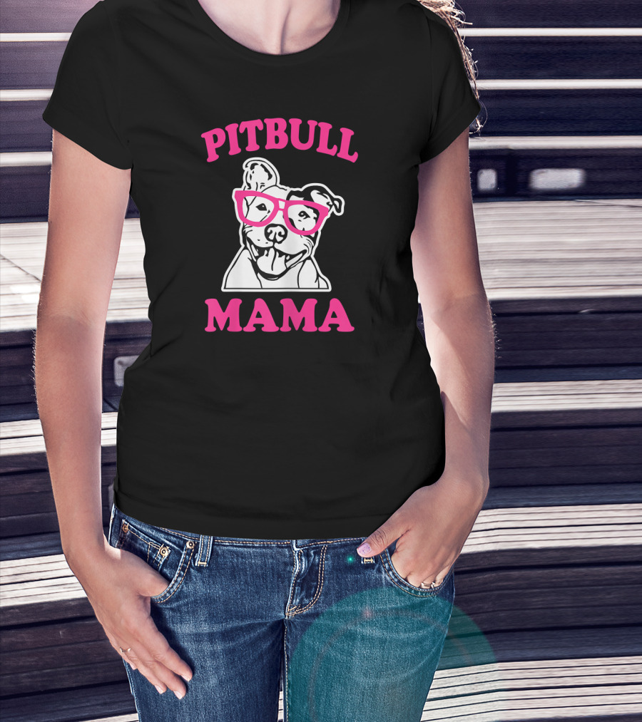 Pitbull Mama Funny Pit Bull Glasses T-Shirt