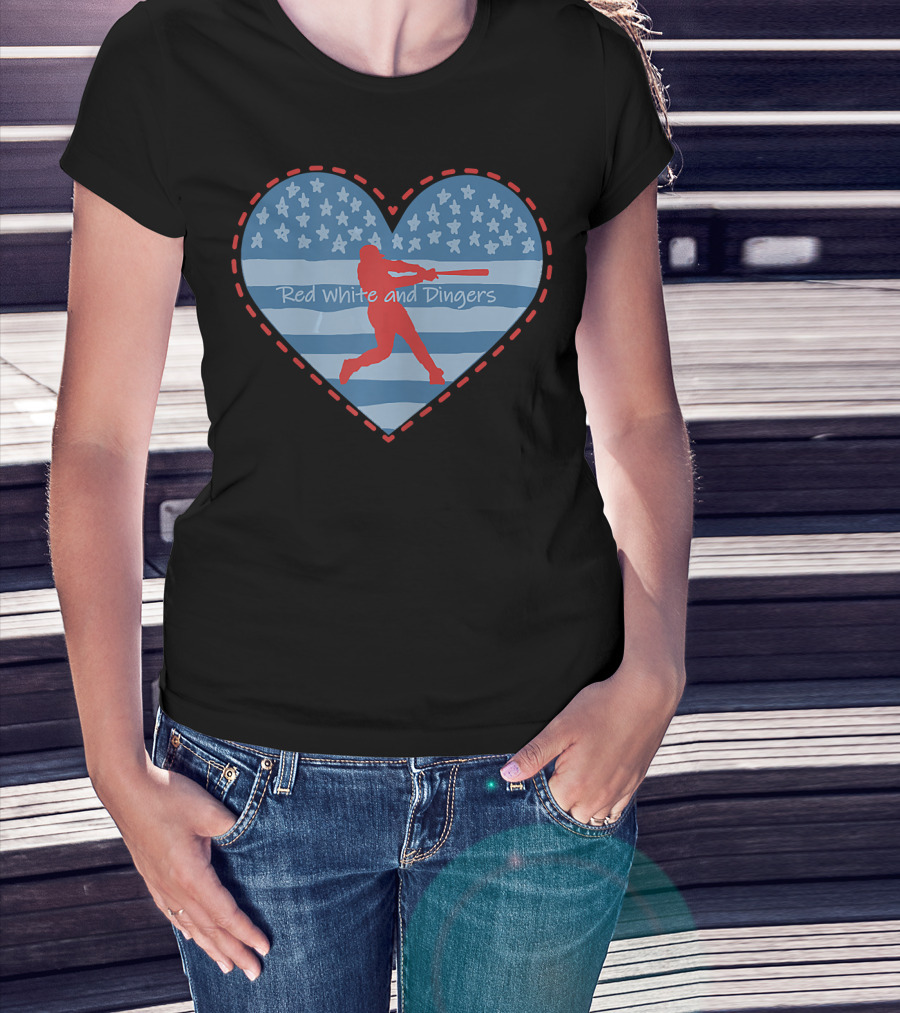 Red White And Dingers Primitive Patriotic American Baseball T-Shirt