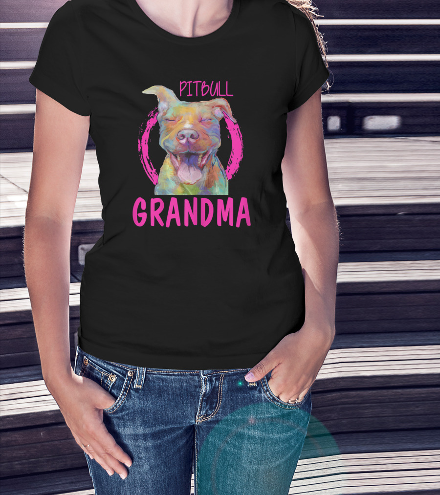 Pitbull Grandma Colorful Happy Dog T-Shirt