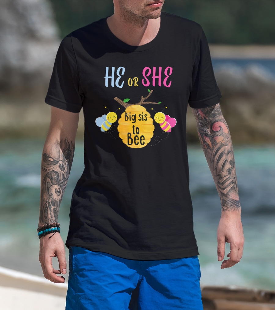 The He or She Big Sis to Bee T-shirt is designed for everyday wear and a consistent fit. Fabric is pre-shrunk ring-spun cotton with durable stitching. See the size chart below for exact measurements.