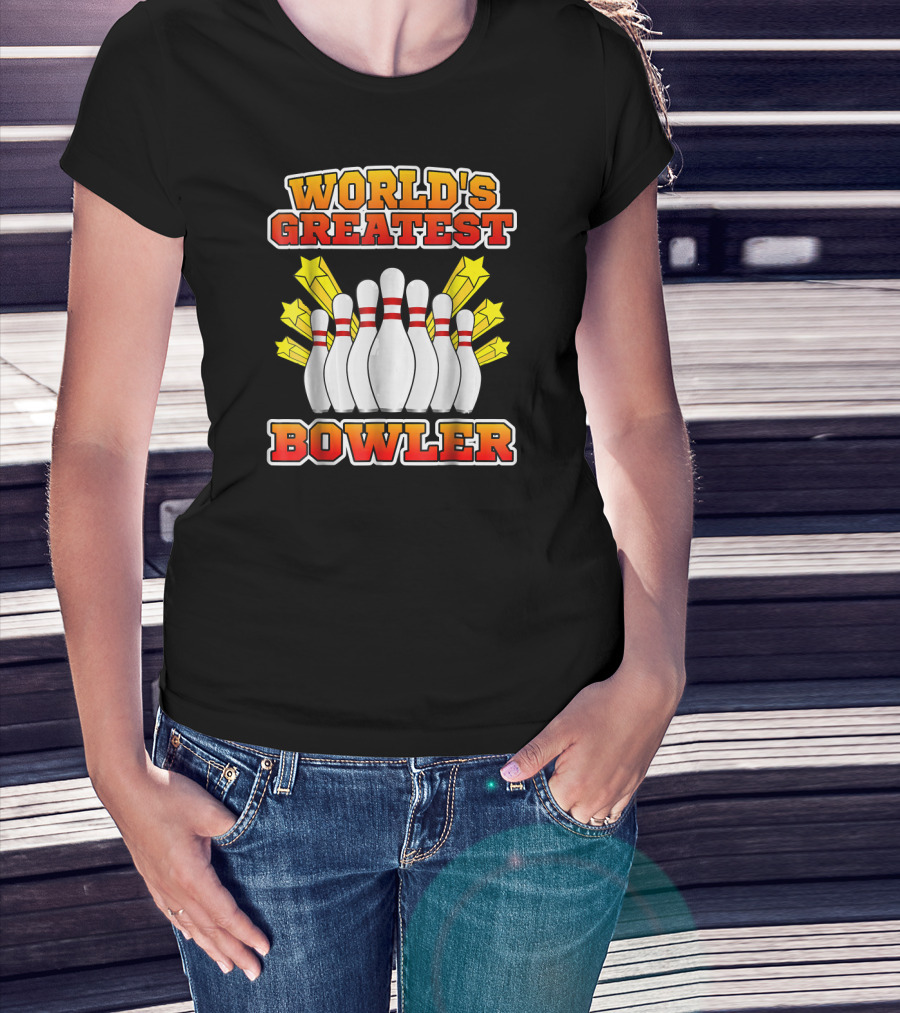 World's Greatest Bowler With Bowling Pins And Stars T-Shirt