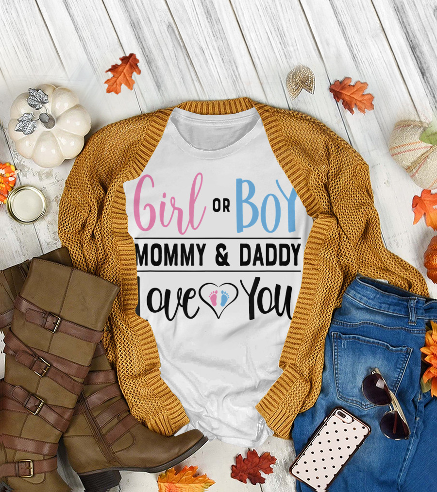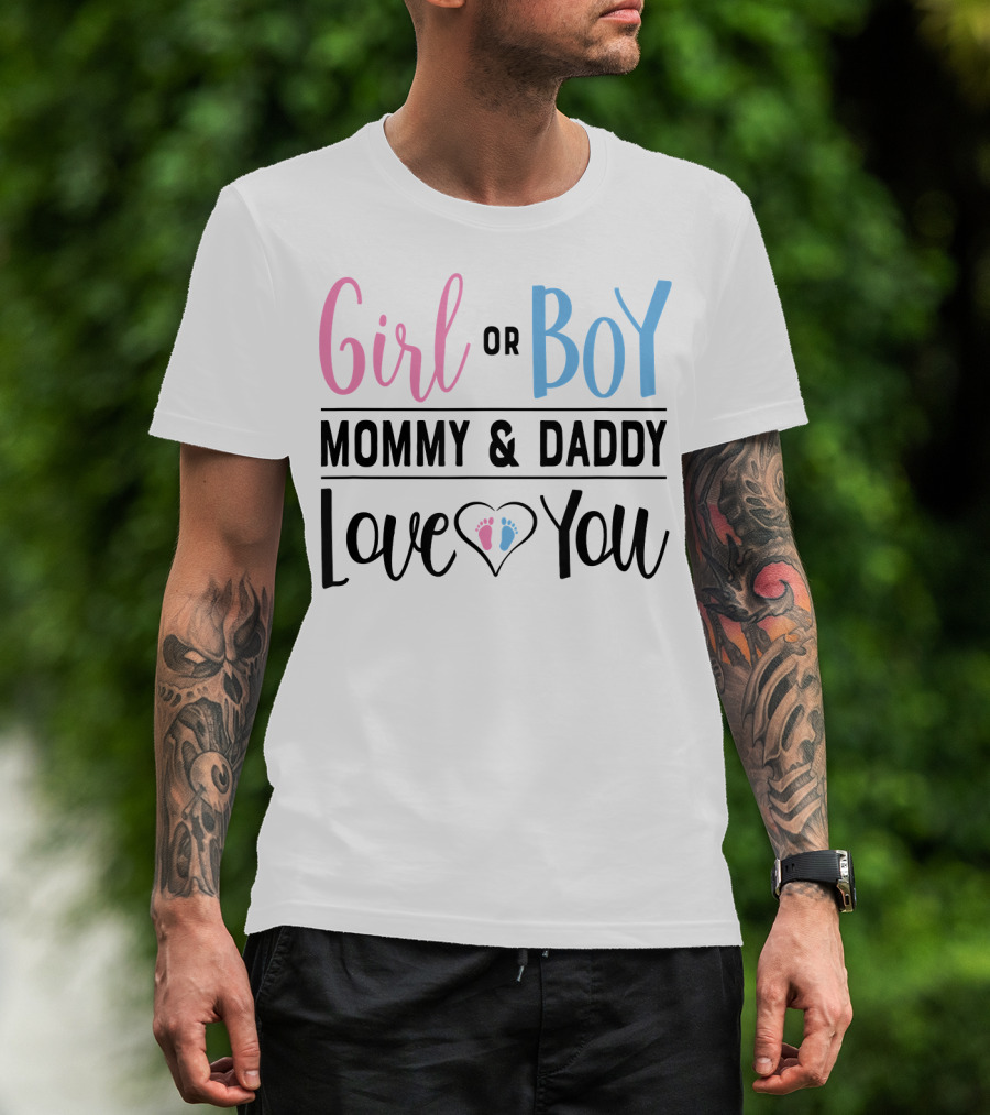 Girl Or Boy Mommy And Daddy Love You Heart Feet T-Shirt