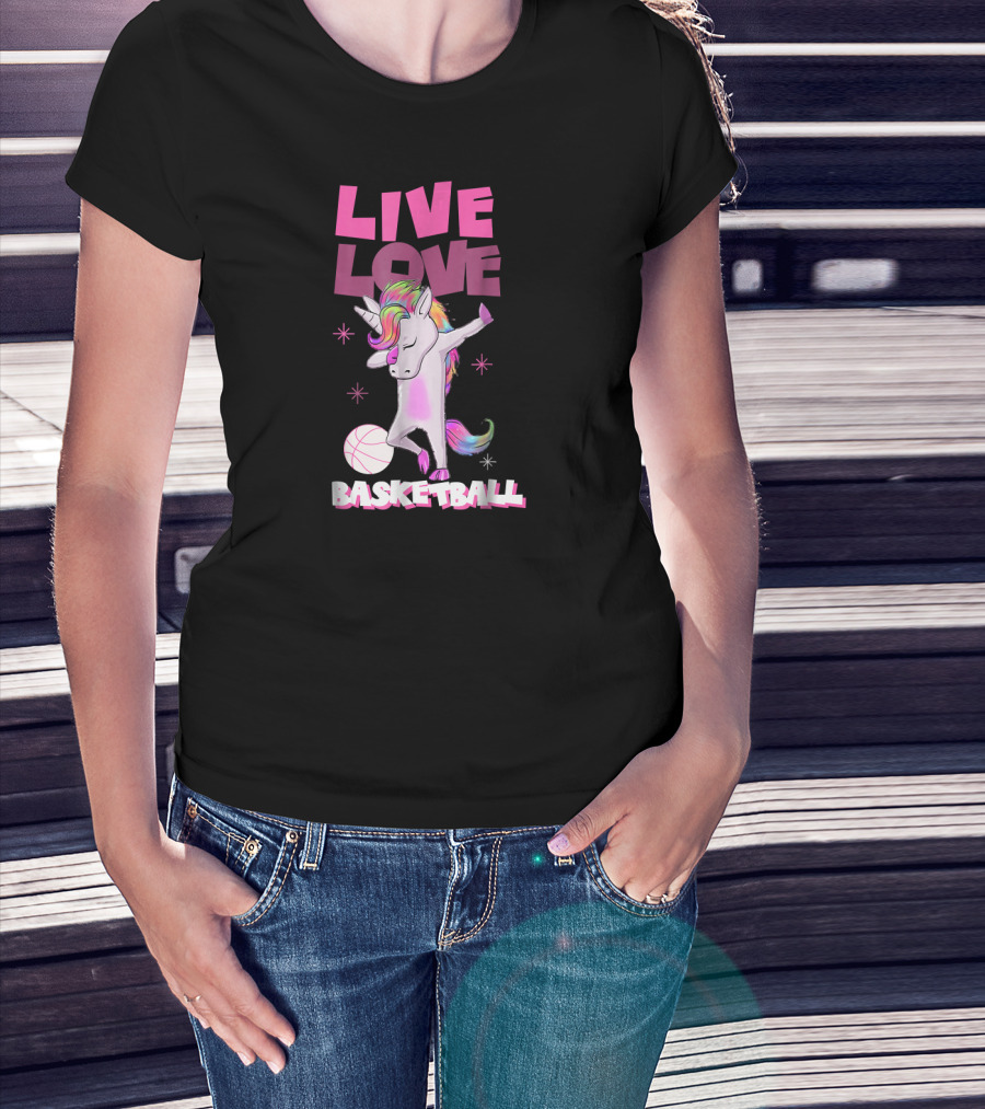 Live Love Basketball Dabbing Unicorn T-Shirt
