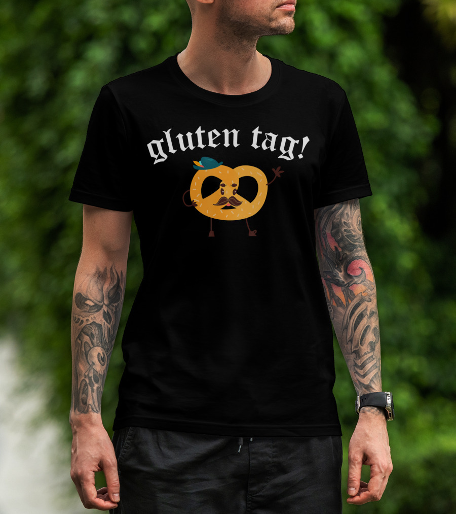 Gluten Tag Funny Oktoberfest Pretzel With Mustache And Hat T-Shirt