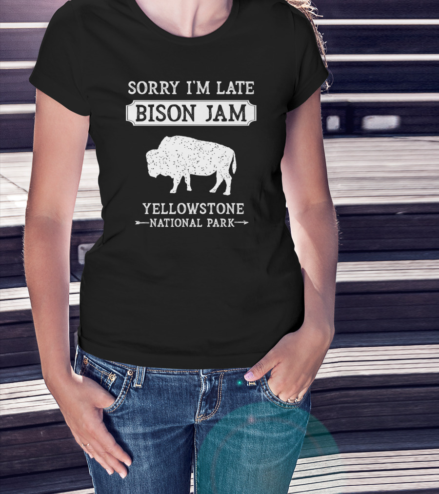 Sorry I'm Late Bison Jam Yellowstone National Park T-Shirt
