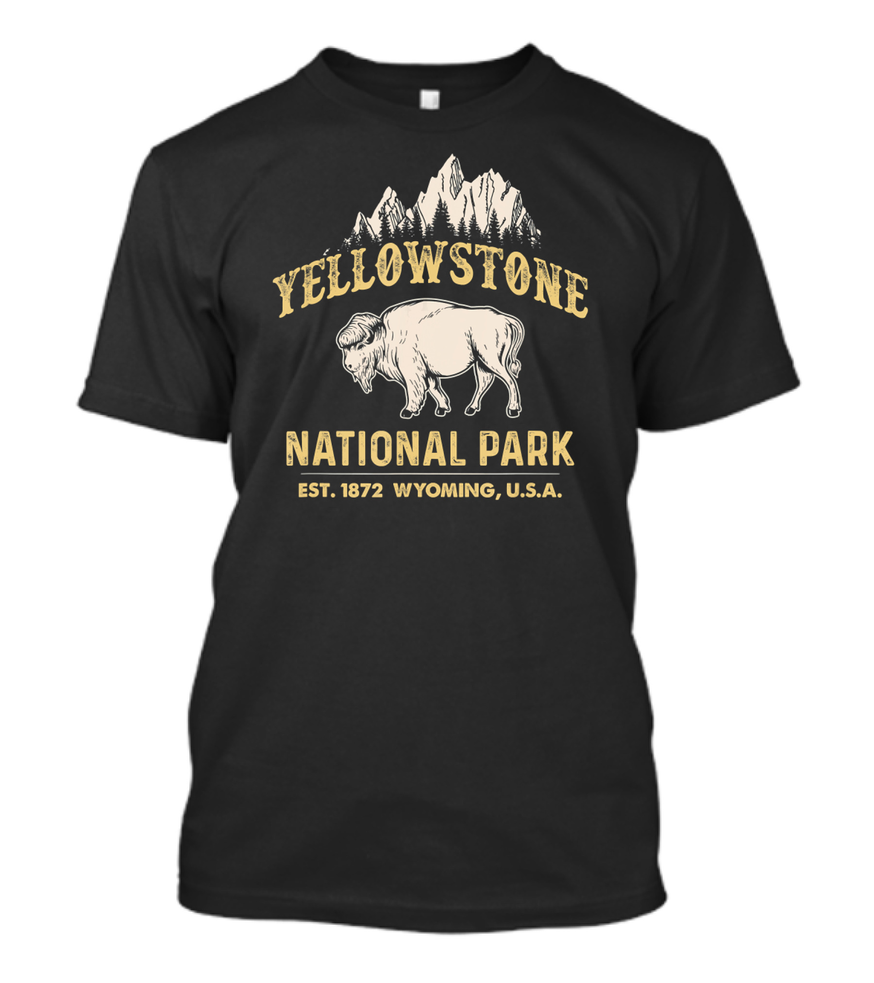 The Yellowstone National Park Est. 1872 Wyoming USA Bison Mountains T-shirt is designed for everyday wear and a consistent fit. Fabric is pre-shrunk ring-spun cotton with durable stitching. See the size chart below for exact measurements.