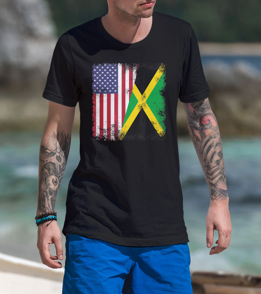 Half Jamaican Flag Vintage Jamaica U.S.A. Flag Overlay T-Shirt