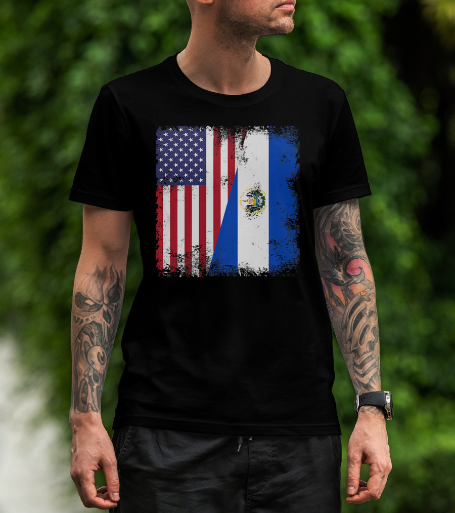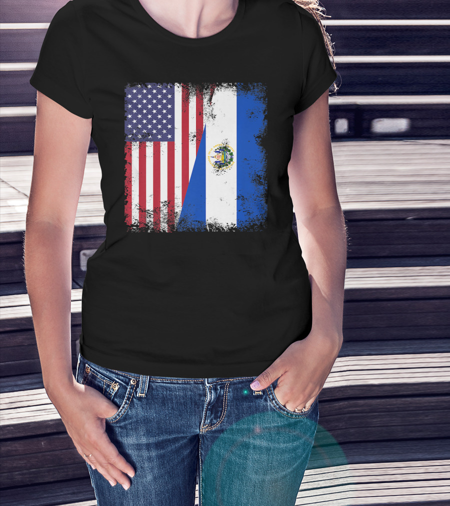 The United States and Half Salvadoran Flag Vintage El Sal T-shirt is designed for everyday wear and a consistent fit. Fabric is pre-shrunk ring-spun cotton with durable stitching. See the size chart below for exact measurements.