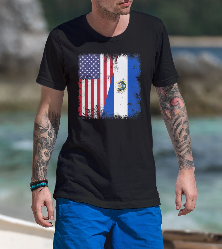 United States And Half Salvadoran Flag Vintage El Sal T-Shirt