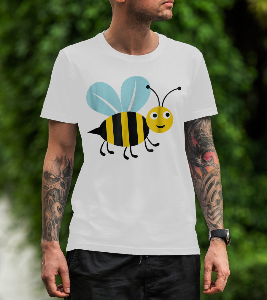 The Happy Honey Bee Cute Cartoon T-shirt is designed for everyday wear and a consistent fit. Fabric is pre-shrunk ring-spun cotton with durable stitching. See the size chart below for exact measurements.