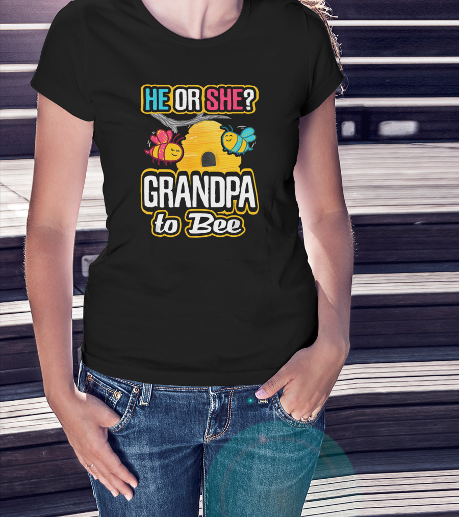 He Or She Grandpa To Bee Gender Reveal Beehive With Bees T-Shirt