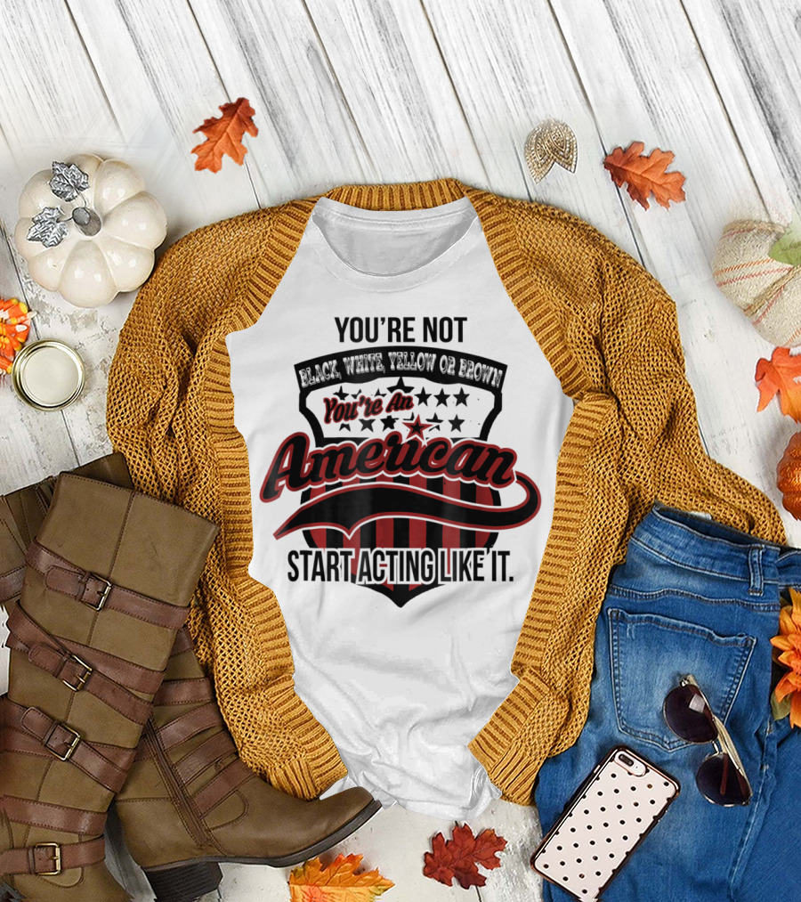 You're Not Black White Yellow Or Brown You're An American Start Acting Like It Patriotic Shield T-Shirt