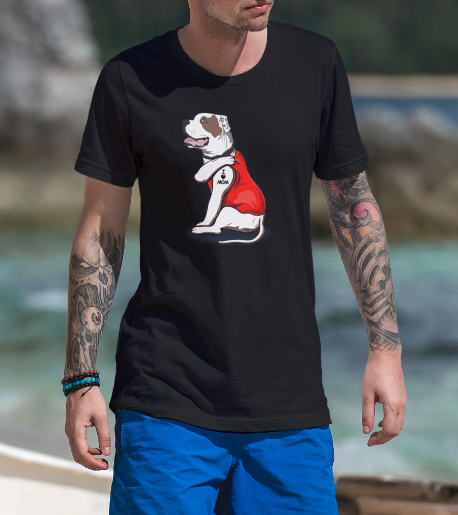 American Bulldog Wearing I Love Mom Tattoo Paw Sleeve T-Shirt