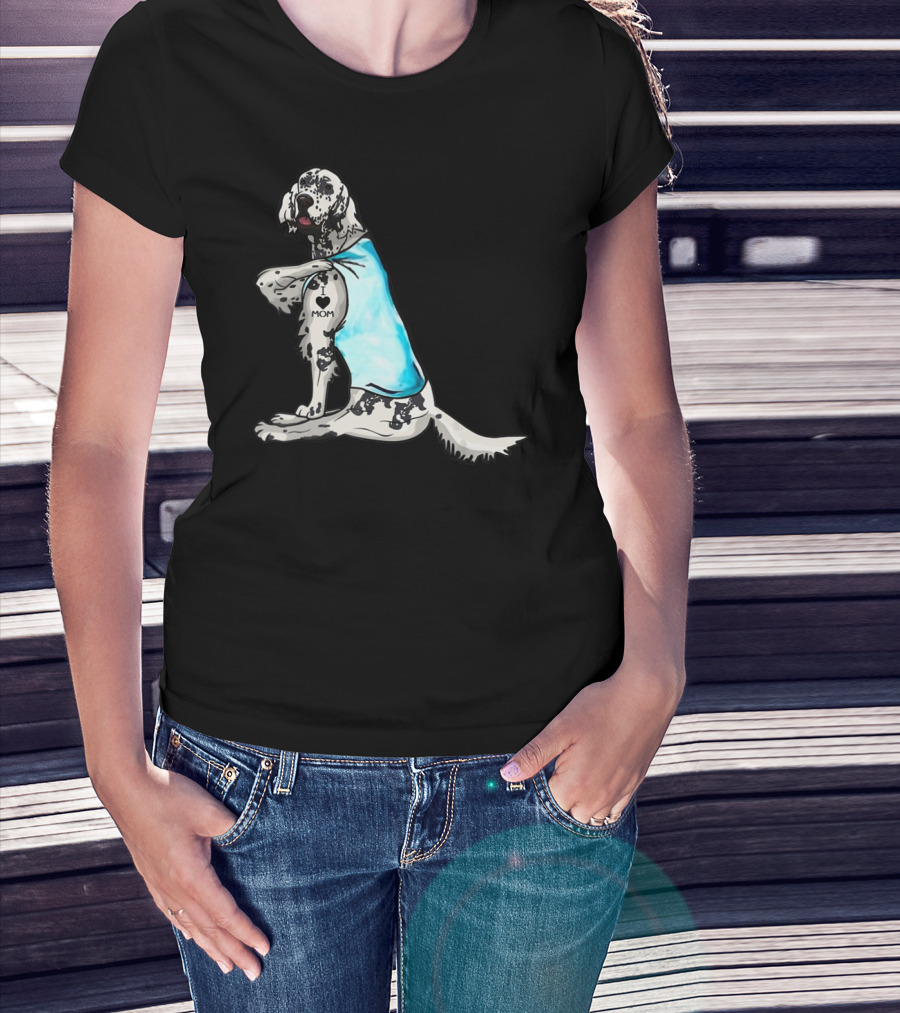 English Setter With I Love Mom Tattoo And Blue Bandana T-Shirt