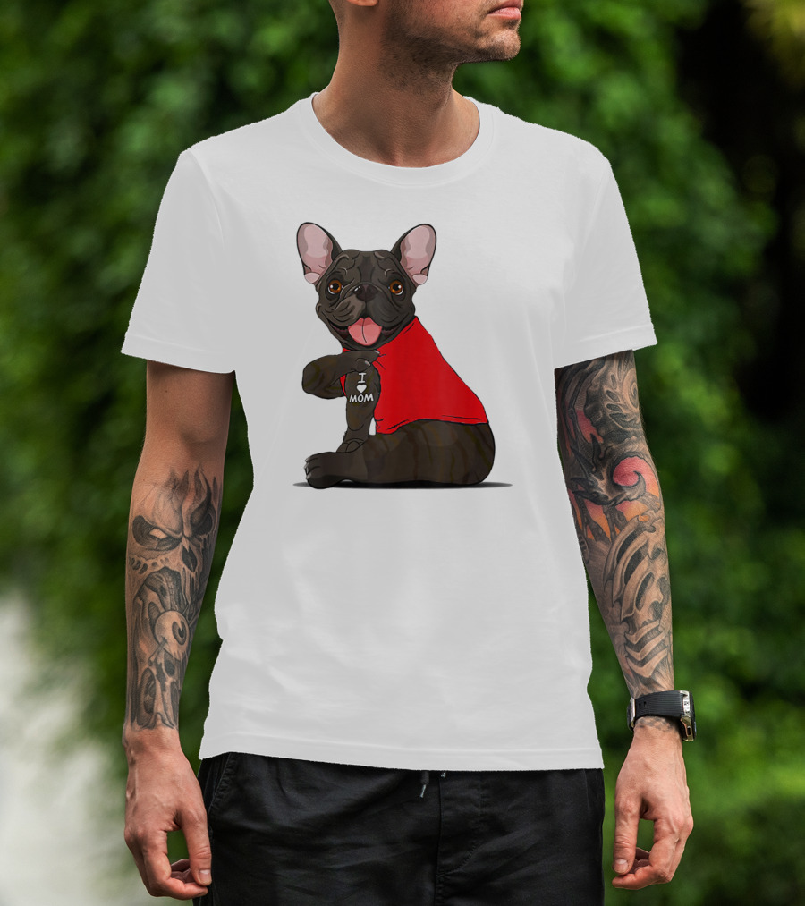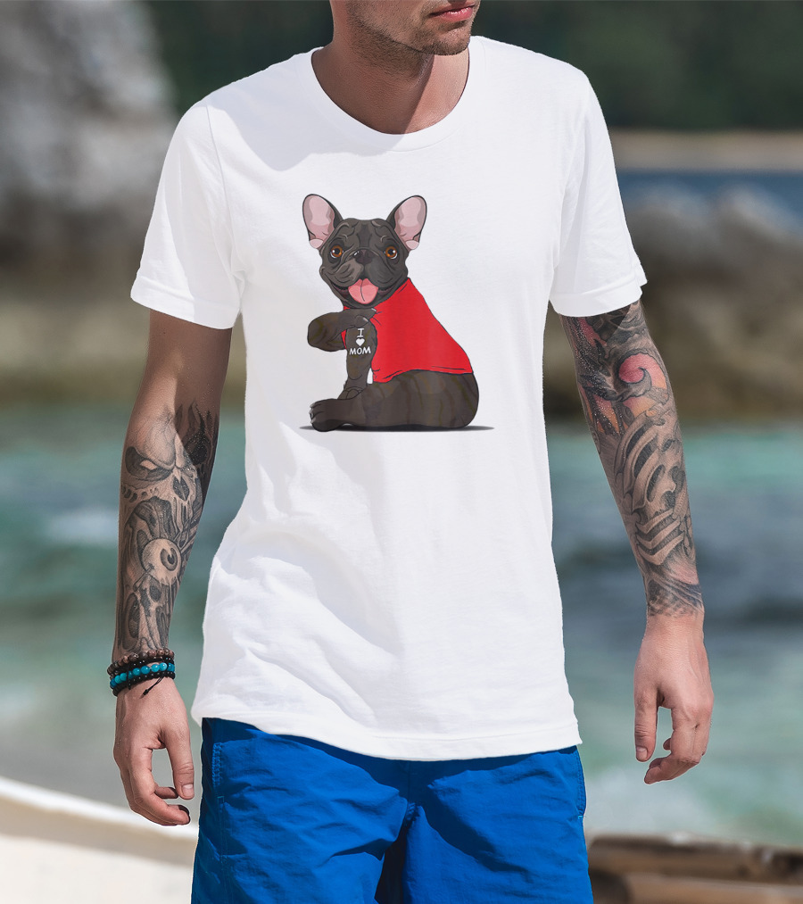 French Bulldog I Love Mom Tattooed In Red T-Shirt
