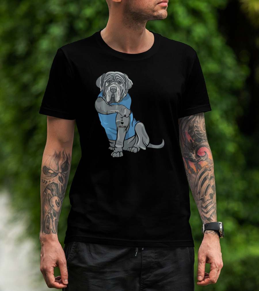 Neapolitan Mastiff I Love Mom Tattoo Dog Wearing Blue T-Shirt