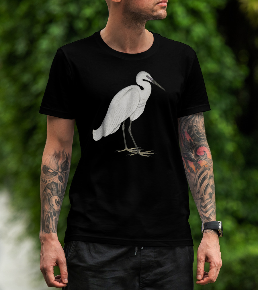 The Great White Heron Bird T-shirt is designed for everyday wear and a consistent fit. Fabric is pre-shrunk ring-spun cotton with durable stitching. See the size chart below for exact measurements.